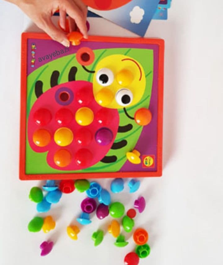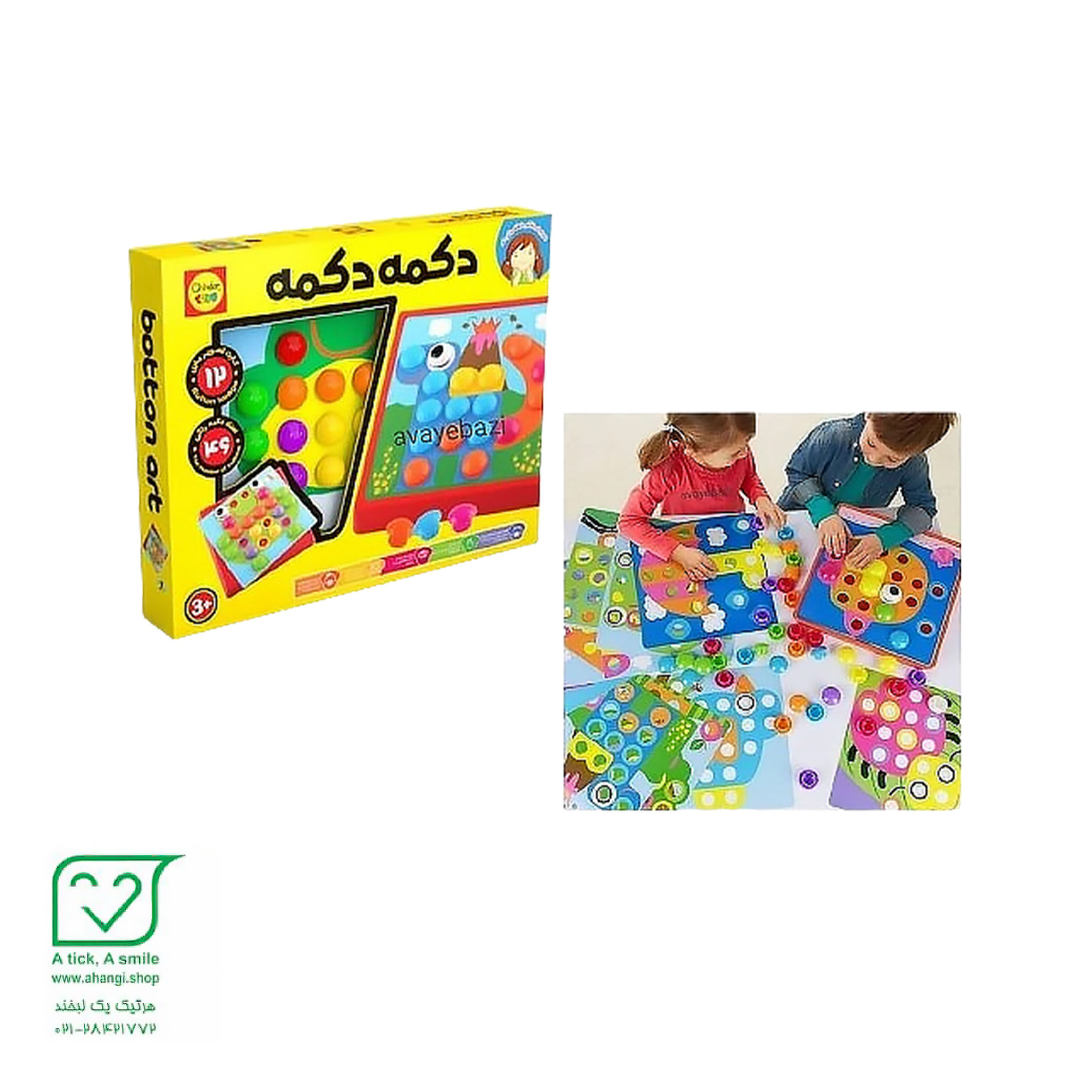 بازی آموزشی دکمه دکمه یک اسباب‌بازی آموزشی و سرگرم‌کننده برای کودکان بالای ۳ سال است که با هدف تقویت مهارت‌های دست‌ورزی، هماهنگی چشم و دست، شناخت رنگ‌ها و اشکال طراحی شده است. کودک با قرار دادن دکمه‌های رنگی روی صفحات تصویری، تصاویری جذاب و متنوع خلق می‌کند. این بازی خلاقانه نه تنها موجب پرورش دقت و تمرکز کودک می‌شود، بلکه احساس موفقیت و اعتمادبه‌نفس را نیز در او تقویت می‌کند.