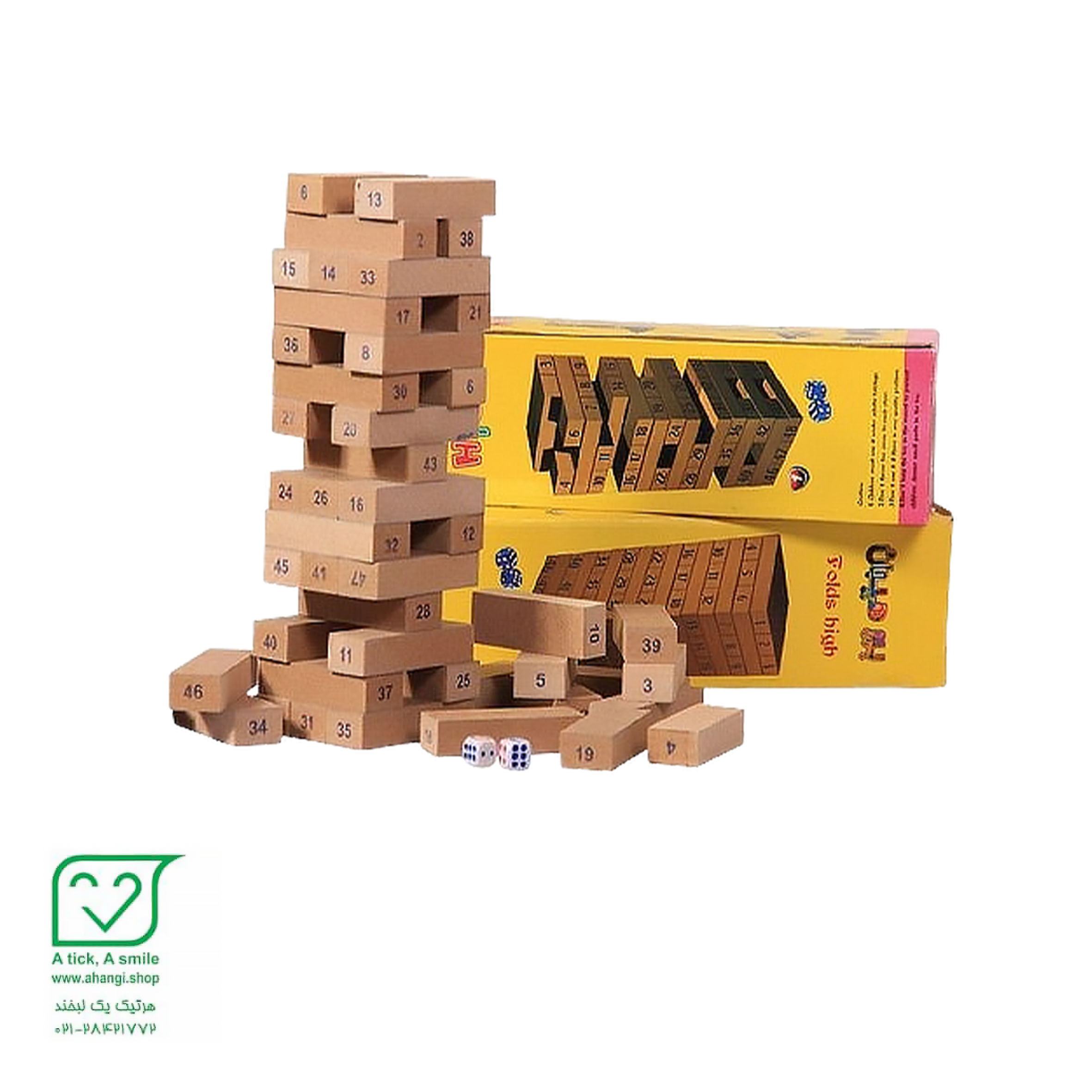 • تعداد قطعات: ۵۴ بلوک چوبی + ۴ عدد تاس