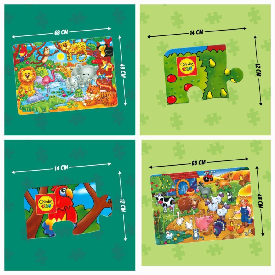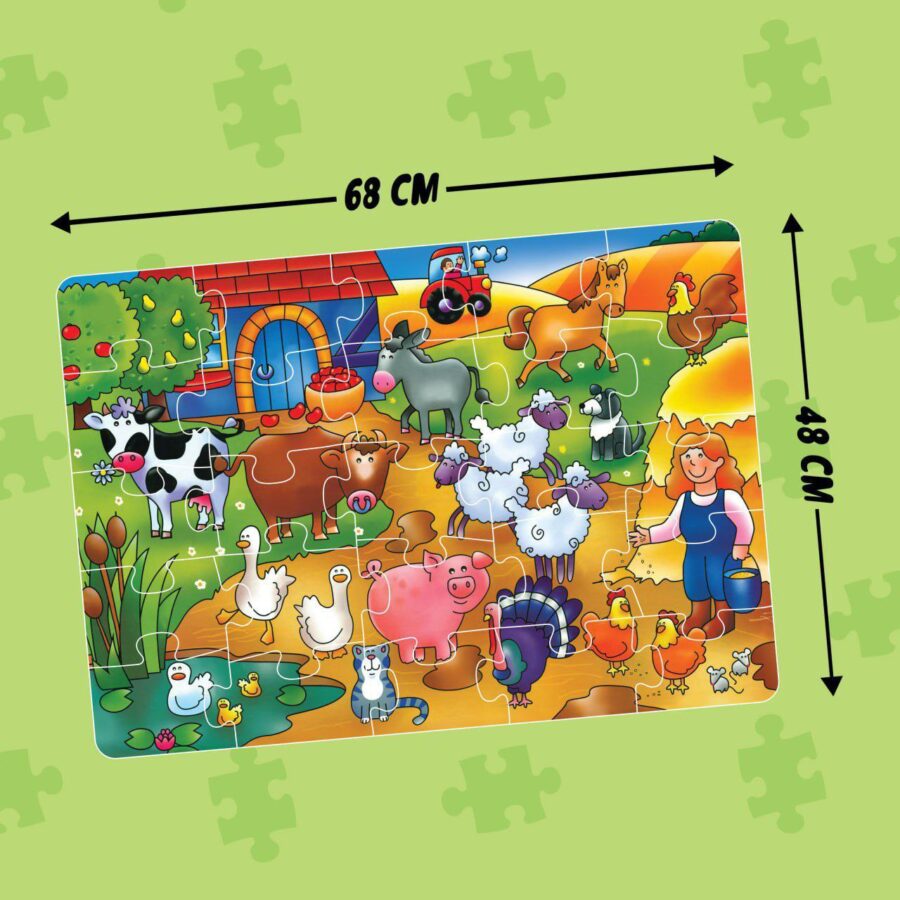 • محتویات جعبه: ۱۲ قطعه پازل بزرگ با تصاویر رنگارنگ حیوانات و صحنه‌های مزرعه