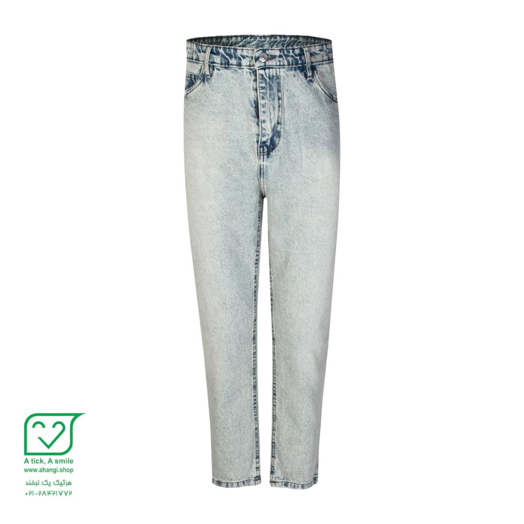 شلوار جین آبی روشن مردانه مدل مام‌فیت سنگ‌شور