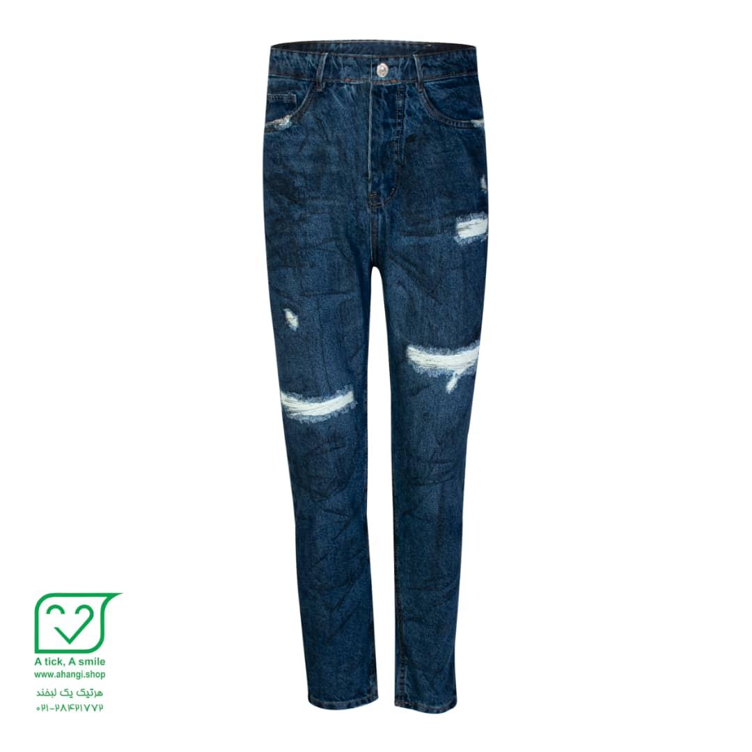 شلوار جین مردانه سورمه‌ای مام زاپ‌دار و دیسترس