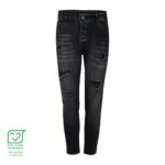 با شلوار جین مشکی مردانه اسکینی زاپدار راه راه استایل خود را به سطح جدیدی ببرید. این شلوار با رنگ مشکی تیره و طراحی زاپدار در قسمتهای ران و زانو، انتخابی بینقص برای علاقهمندان به استایلهای خیابانی (استریت استایل) و کژوال است.
