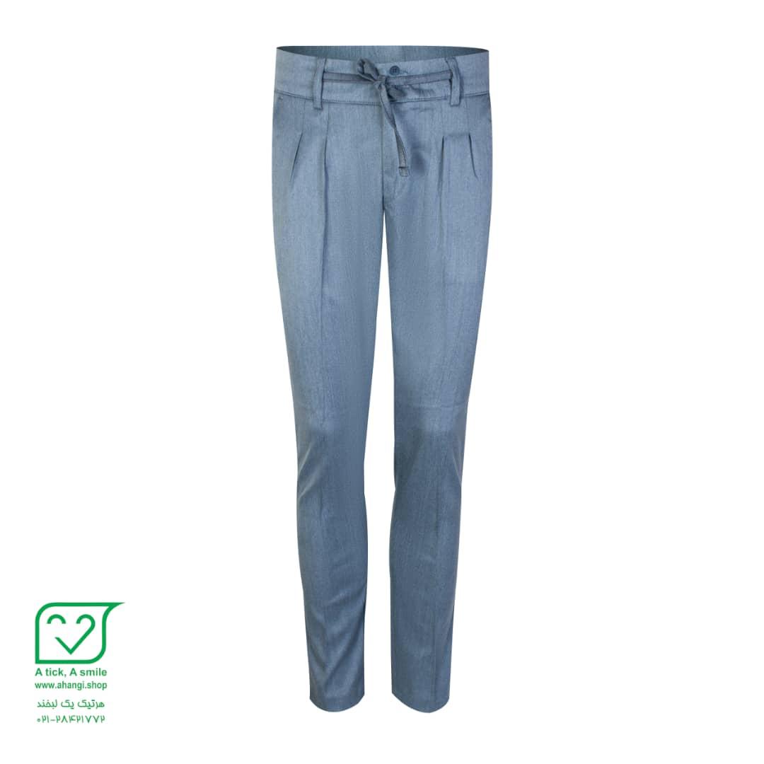 شلوار رسمی آبی مردانه با کمربند پارچهای مام مدل پلیسهدار